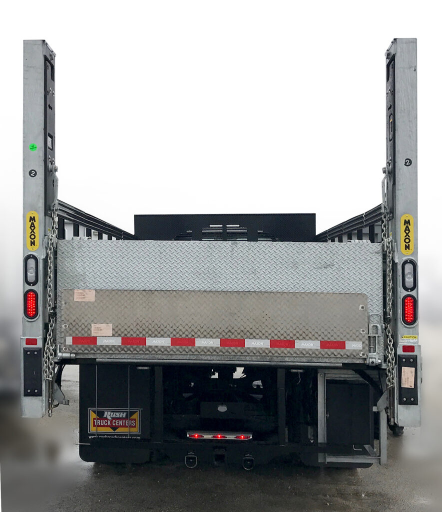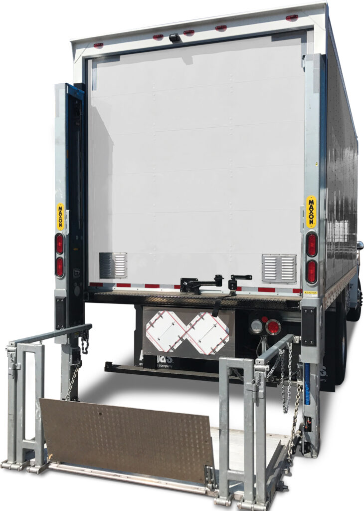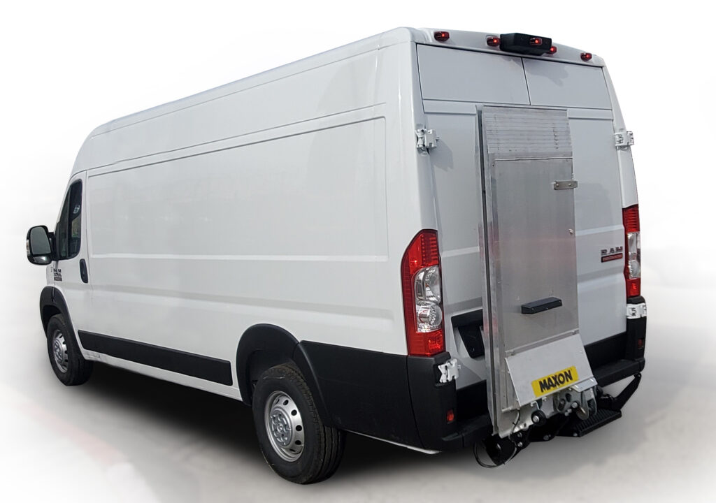 El Modelo GPC X1-LDF para vanes de carga, son la mejor opción de Maxon para atender este tipo de vehículos brindando plataformas de compuertas levadizas de tipo voladizo más ligeras para furgonetas de carga, estas puertas vienen con una plataforma plegable, control remoto de mano y con una capacidad de carga hasta 1,300 libras | (590 Kg).