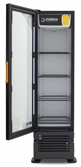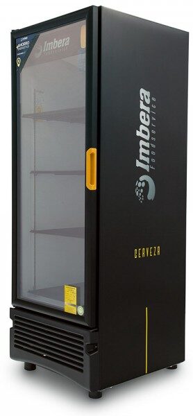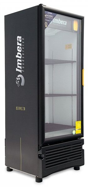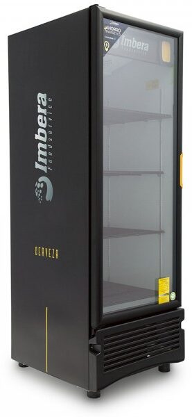 Refrigerador exhibidor de mostrador Imbera de puerta de cristal con capacidad de 17 pies³ de 320 botellas y gabinete de color negro ideal para un negocios de venta de cervezas y buscan optimizar al máximo el espacio de exhibición.