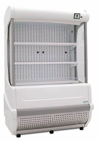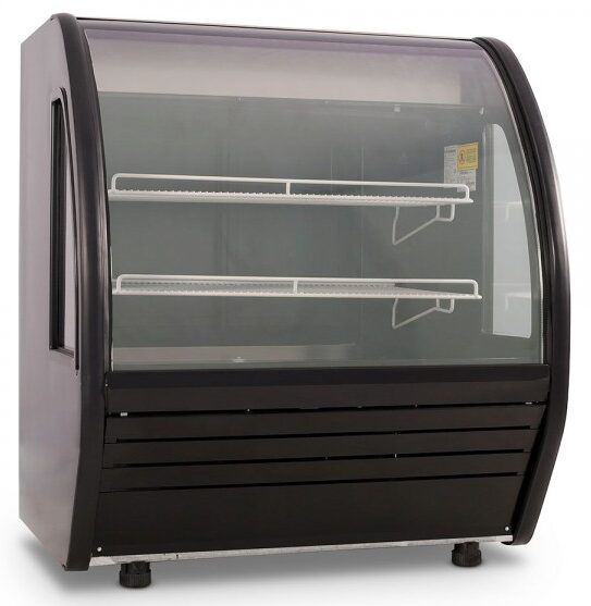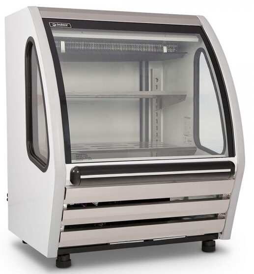 Vitrina delicatessen Imbera disponibles en color blanco y negro de 1 m de largo ideal para una pastelería, productos lácteos entre otros, para una tienda de abarrotes o un comercio minorista de tamaño pequeño.
