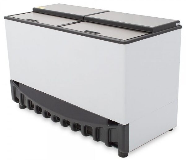 Congelador horizontal gris marca Imbera ofrecemos con 1 ó 2 tapa de cofre de 25 pies³ ideal para agregar un importante espacio adicional de almacenaje congelado a tu negocio grande con congelación relámpago.