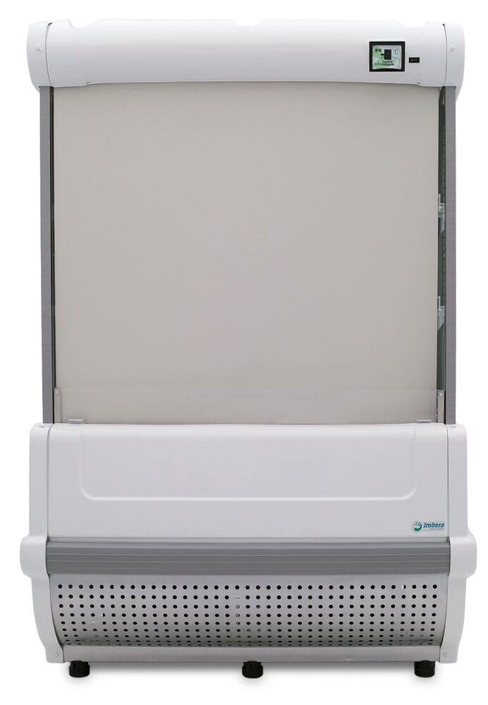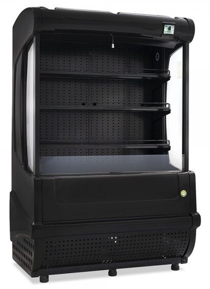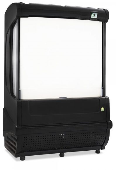 Cortina de aire de tramo abierto Imbera color negro de 23 pies³ ideal para negocios de tamaño mediano que buscan soluciones rápidas para adquirir alimentos y bebidas pre-empacados limpios y frescos.