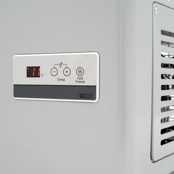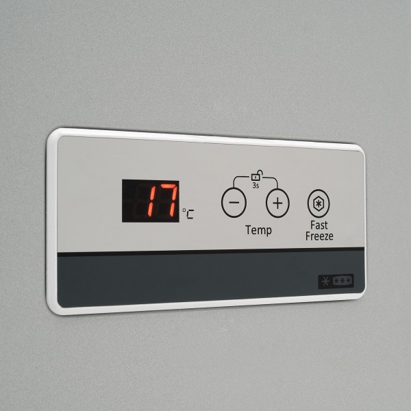 Control de temperatura y fast freeze que permite ajustar el congelador desde un modo de congelación relámpago hasta uno de congelación normal desde el exterior.