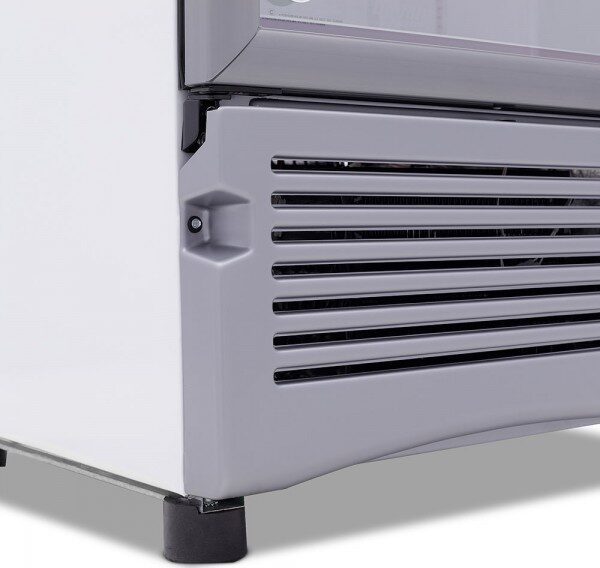 Cuatro amplias charolas para exhibición con ranuras para un enfriamiento más uniforme.