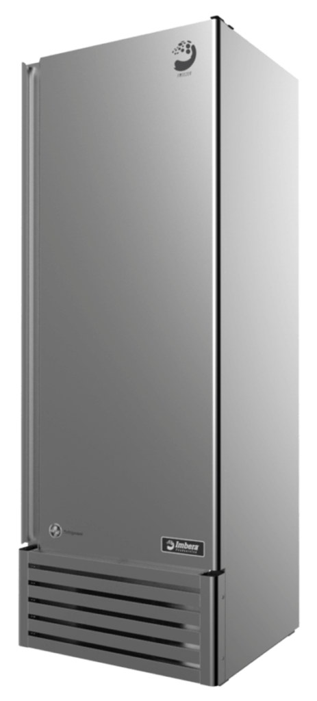 Refrigerador exhibidor Imbera de una puerta de solida con capacidad de 19 pies³ de acero inoxidable ideal para un negocio que busca un equipo altamente eficiente, de bajo costo y de línea vanguardista, robusto y con la mejor tecnología de refrigeración.