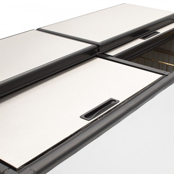 1 ó 2 Tapas sólida abatible tipo cofre que mejora de manera independiente el aislamiento del frío.